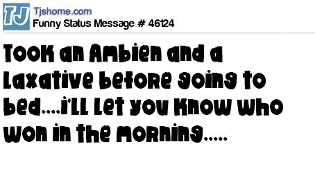 X took an Ambien and a laxative before going to bed....i'll let you know who won in the morning.....
