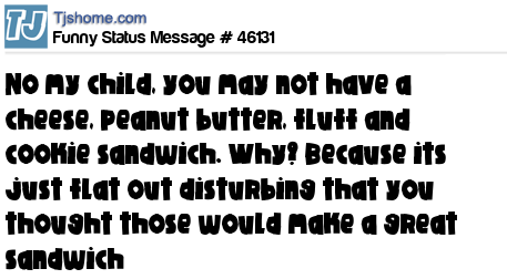 X says No my child, you may not have a cheese, peanut butter, fluff and cookie sandwich. Why? Because its just flat out disturbing that you thought those would make a great sandwich