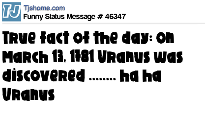 X True fact of the day: On March 13, 1781 Uranus was discovered ........ ha ha Uranus