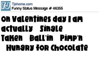 X On Valentines day I am actually ❒ Single ❒ Taken ❒ Ball'in ❒ Pimp'n ✔ Hungry for Chocolate