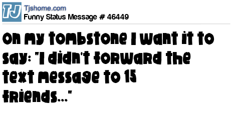 - # 61200 I've never seen that tombstone that read: "Died from not forwarding that text to ten friends."