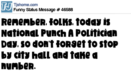 X says Remember, folks, today is National Punch A Politician Day, so don't forget to stop by city hall and take a number.