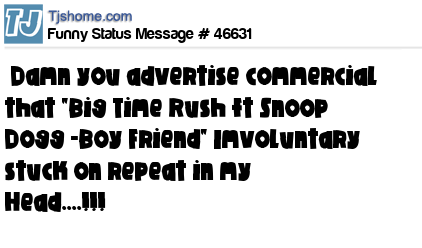 X is Damn you advertise commercial that "Big Time Rush ft Snoop Dogg -Boy Friend" Imvoluntary stuck on repeat in my Head....!!!