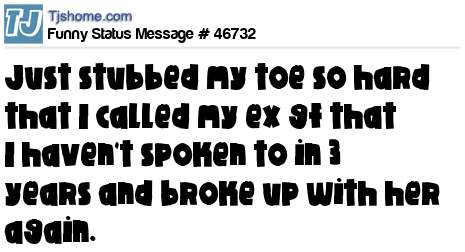 X just stubbed my toe so hard that I called my ex gf that I haven't spoken to in 3 years and broke up with her again.