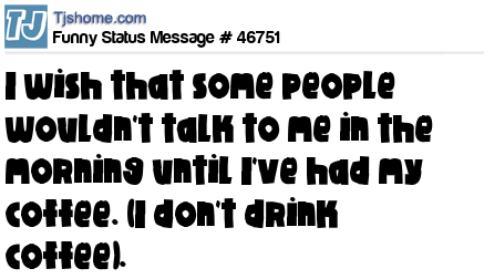 X I wish that some people wouldn't talk to me in the morning until I've had my coffee. (I don't drink coffee).