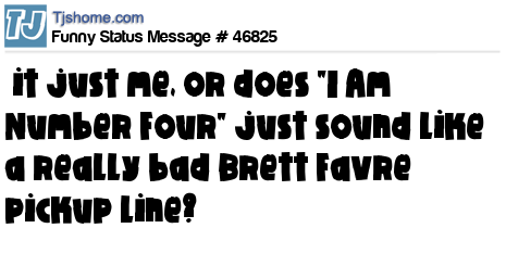 X   it just me, or does "I Am Number Four" just sound like a really bad Brett Favre pickup line?