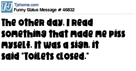 X The other day, I read something that made me piss myself. It was a sign, it said "Toilets closed."