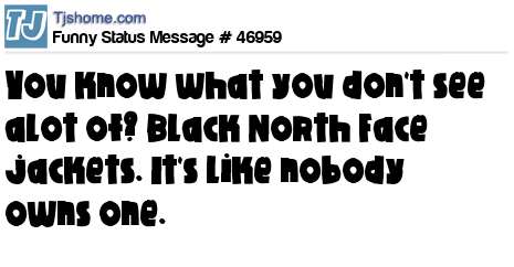 X says You know what you don't see alot of? Black North Face jackets. It's like nobody owns one.