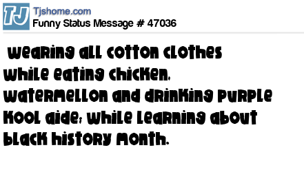 X is wearing all cotton clothes while eating chicken, watermellon and drinking purple kool aide; while learning about black history month.