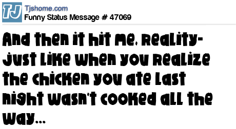 X is And then it hit me, reality- just like when you realize the chicken you ate last night wasn't cooked all the way...