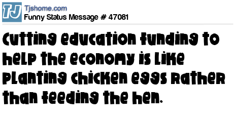 X says Cutting education funding to help the economy is like planting chicken eggs rather than feeding the hen.