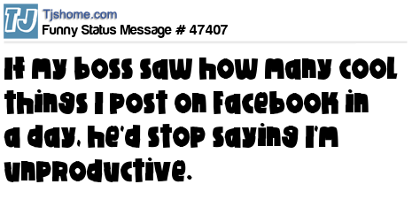 - # 45108 Maybe if my boss saw how many statuses I can drop in a day, he'd stop saying I'm unproductive.