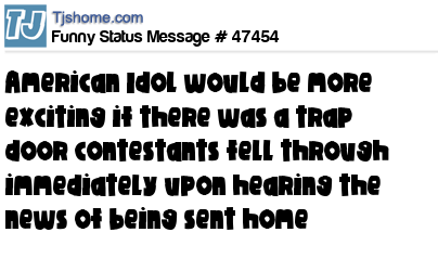- # 44123 Think's that American Idol should bring back the "Trap Door" just to make it a little more interesting. o/