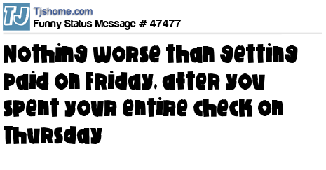 X is Nothing worse than getting paid on Friday, after you spent your entire check on Thursday