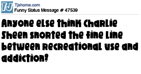 - # 48400 Anyone else think Charlie Sheen snorted the fine line between recreational use and addiction?