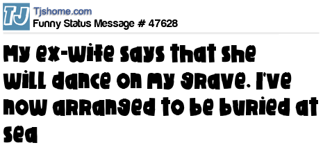 X is My ex-wife says that she will dance on my grave. I've now arranged to be buried at sea