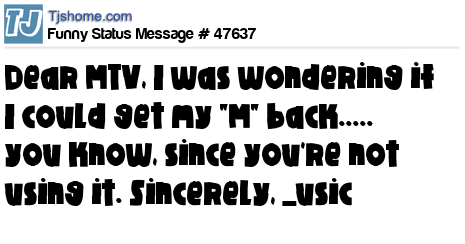 X  Dear MTV, I was wondering if I could get my "M" back..... you know, since you're not using it. Sincerely, _usic