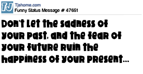 X Don`t let the sadness of your past, and the fear of your future ruin the happiness of your present...