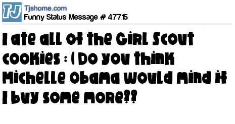 X  I ate all of the Girl Scout cookies : ( Do you think Michelle Obama would mind if I buy some more??