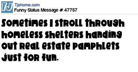 X  sometimes I stroll through homeless shelters handing out real estate pamphlets just for fun.