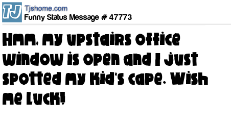 X Hmm, my upstairs office window is open and I just spotted my kid's cape. Wish me luck!