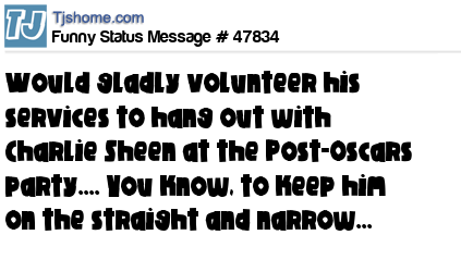 - # 47827 Best part of the Oscars was The Good Morning America commercial where Charlie Sheen says "I am on a drug, it's called Charlie Sheen!"
