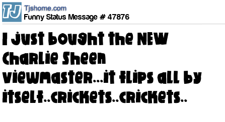 X I just bought the NEW Charlie Sheen viewmaster...it flips all by itself..crickets..crickets..