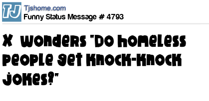 X X wonders "Do homeless people get knock-knock jokes?"