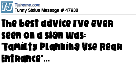 - # 24932 Saw a sign at the hospital that said "Family Planning.... Use Rear Entrance". I thought it was good advice.