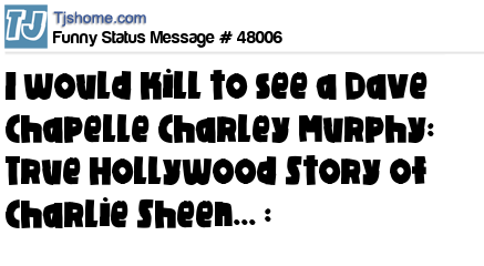 X says I would kill to see a Dave Chapelle Charley Murphy: True Hollywood Story of Charlie Sheen... :\