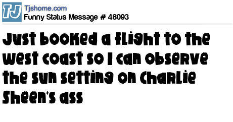 X just booked a flight to the west coast so I can observe the sun setting on Charlie Sheen's ass