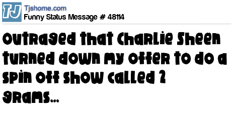 - # 48066 Wondering if the next Charlie Sheens tv show will be called "Two And A Half Grams."