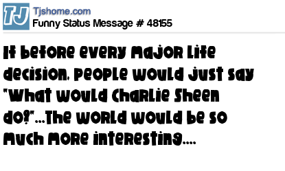 X says If before every major life decision, people would just say "What would Charlie Sheen do?"...The world would be so much more interesting....