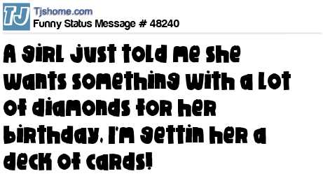 X is A girl just told me she wants something with a lot of diamonds for her birthday, I'm gettin her a deck of cards!