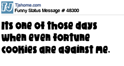 - # 49197 Most fortune cookies are too boring and cliché. So, I've decided to start my own fortune cookie company. My goal is to at least make the fortunes more accessible and realistic. Such as: You will experience a horrific bowel movement in about 10 minutes.