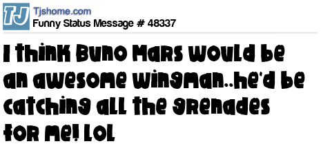 X is I think Buno Mars would be an awesome wingman..he'd be catching all the grenades for me! lol