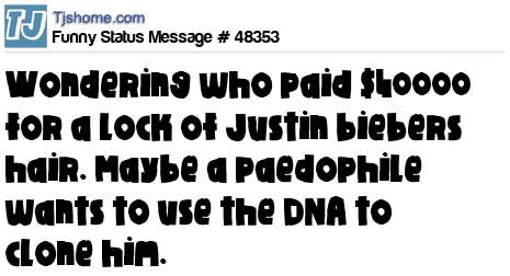 X is wondering who paid $40000 for a lock of Justin biebers hair. Maybe a paedophile wants to use the DNA to clone him.