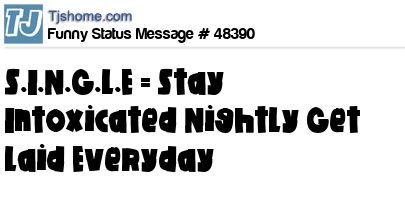 - # 65708 SINGLE= Stay Intoxicated Nightly Get Laid Everyday