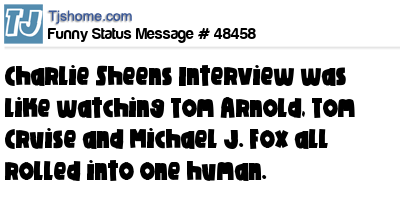 - # 48086 So after watching the hilarious interview I feel closer to Charlie Sheen because have a lot in common. Tiger blood and Adonis DNA..