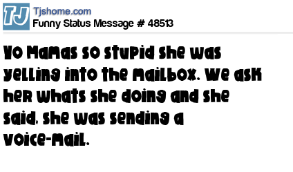 X says Yo Mamas so stupid she was yelling into the mailbox. We ask her whats she doing and she said, she was sending a voice-mail.