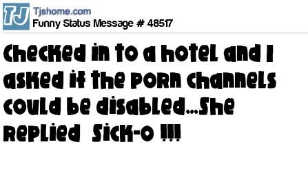 X  checked in to a hotel and I asked if the porn channels could be disabled…She replied “Sick-o”!!!