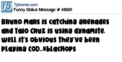 X is Bruno mars is catching grenades and Taio Cruz is using dynamite, well it's obvious they've been playing COD..#blackops