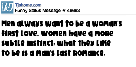 X is Men always want to be a woman's first love. Women have a more subtle instinct; what they like to be is a man's last romance.