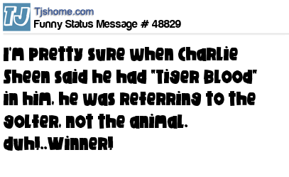 - # 178414 Charlie Sheen has all this "tiger" blood I guess its only fair Tiger has a little "Charlie" blood.