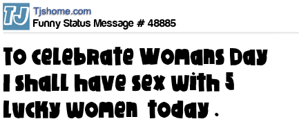 X says To celebrate Womans Day I shall have sex with 5 lucky women today .