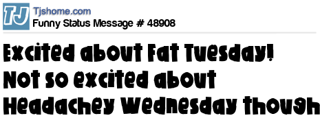 X is excited about Fat Tuesday! Not so excited about Headachey Wednesday though.
