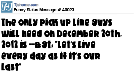 X is The only pick up line guys will need on December 20th, 2012 is --> "let's live every day as if it's our last"