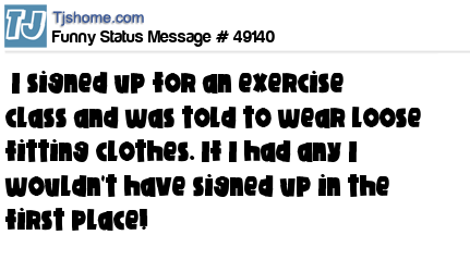- # 86601 I signed up for an exercise class and was told to wear loose fitting clothing. If I HAD any loose fitting clothing, I wouldn't have signed up in the first place!