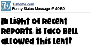 - # 16735 Thinks it would be completly acceptable to eat Taco Bell tacos today for lent because they don't contain REAL meat