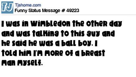 X I was in Wimbledon the other day and was talking to this guy and he said he was a ball boy. I told him I'm more of a breast man myself.